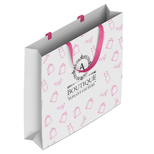 Q: What are Shopping bags?A: Shopping bags, generally known as paper bags, paper carry bags, and paper gift bags are made of various paper & card stocks. These bags are easy to store & handle, eco-friendly, cost-effective, and help improve the customer experience. Q: What paper and size options are available for branded shopping bags?A: We can produce paper bags using natural brown kraft paper, white textured paper, or white coated paper. You can also choose form card stocks such as natural brown kraft card or plain white card. Multiple weight and thickness options are available for both paper and card stocks. In addition, shopping bags can be produced in any custom size that fit your requirements. Q: What printing options are available and can I print on the inside of the paper bags?A: You can choose to have spot colours printed as well as full colour printing on your paper bags. We can print both on the inside and outside of the bags. Please contact our support team for available options based on your selection of paper or card stock. Q: Can you do foil stamping on custom paper bags?A: Yes, we can do foil stamping on our entire range of stocks used for paper bags. In addition, we can also do spot UV coating and soft touch lamination on certain stocks. Your design consultant can help guide you through the available options. Q: What is a gusset and a baseboard?A: A gusset is a fold at the bottom of the bag that allows the bag to expand in order to provide more room. A baseboard is a flat card that is added to the bag’s bottom in order to provide additional support. Q: What measurements do you need for shopping bags?A: You can provide us the required height, width, and depth (gusset) of a fully expanded paper bag and our design team can create a free mock-up for your approval. Q: What are my options for bag handles?A: You can choose from a range of ribbon and string handles. You can also choose to have cutouts instead handles. Please contact our sales team to explore available options for ribbons, strings, cut-out handles, and tassels.